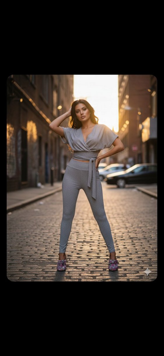 Gri renkte, kemerli ve V yakalı kısa kollu üst ile uyumlu kadınlar için fit kesim aktif giyim Günlük kullanıma uygun. ♀️ VİTRİN görseli temsilidir Boy 39 iki koltuk arası 34 cm