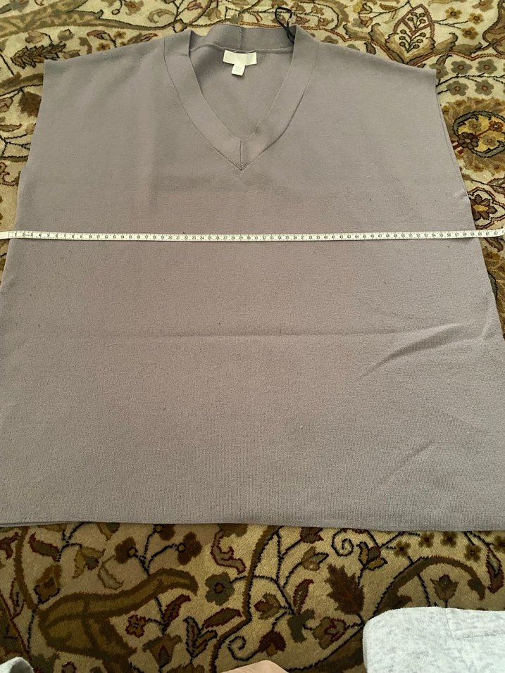 Gri renkli, V yakalı, kolsuz süveter. İpek gibi kumaşı ve kemerli, bol kesimiyle rahat bir kullanım sağlar. Midi boyda, günlük kullanıma uygundur.