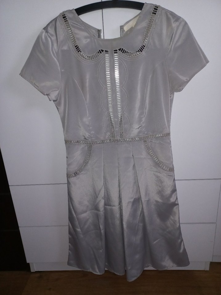 V yakalı, kısa kollu, gri midi elbise, drapeli detaylarıyla romantik akşamlar için uygun. park bravo markasi. hic giyilmedi. kumas saten gibi. ancak gündüz icin de uygun