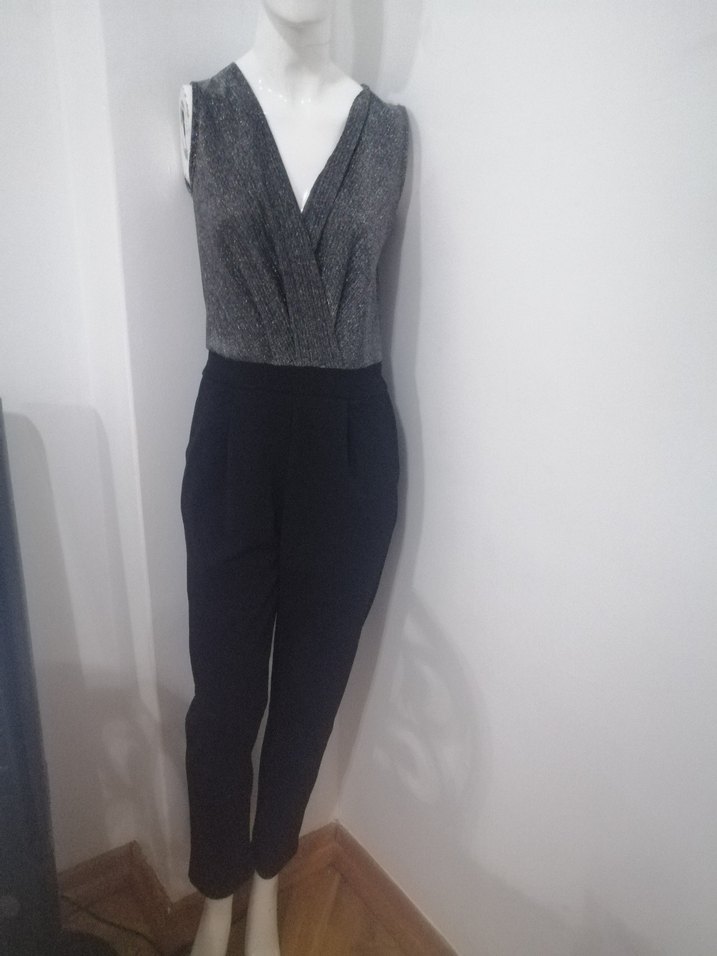 V yakalı, kolsuz, piliseli gri tulum. Normal boy, regular fit ve ofis kullanımı için uygun. Ürün temiz ve sorunsuzdur herhangi bir sorunu yoktur iki koltuk arası 45 bel 35 basen 45 boy 1metre 43 cm