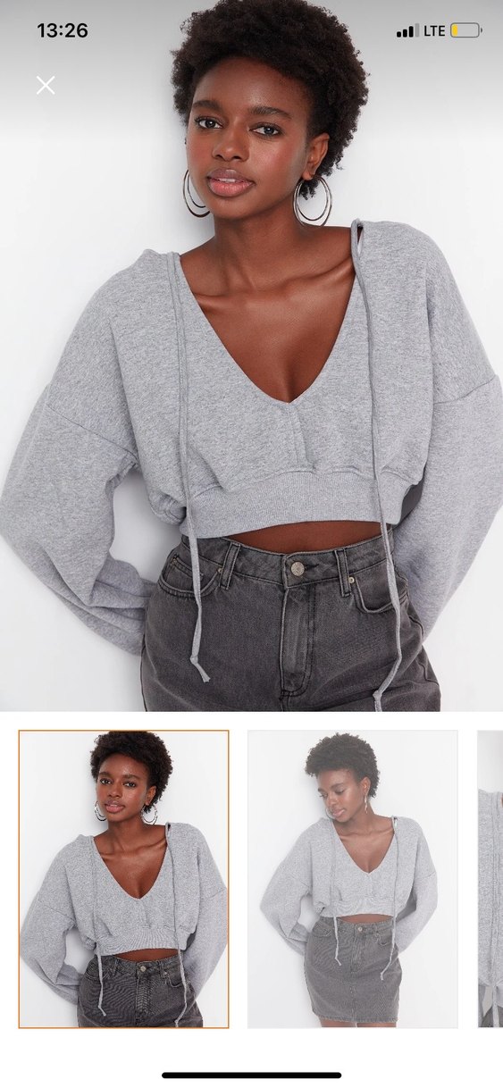 Gri renkli, V yakalı ve uzun kollu sweatshirt, salaş kesimiyle rahat bir görünüm sunar. Denim kumaştan üretilmiş, gündelik kullanıma uygun sokak stili. Effortless chic dokunuşuyla trend bir parça.