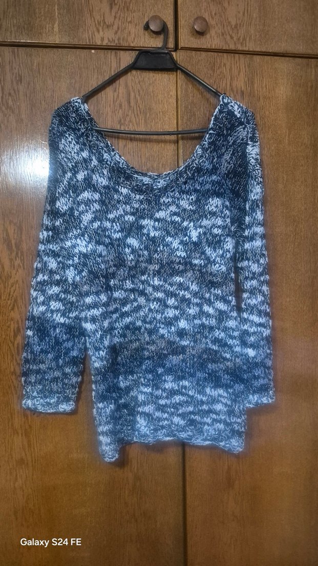 Gri renkte, V yaka ve uzun kollu triko el örgüsü kadın kazak. Bol kesim ve midi boyda, rahat ve şık bir görünüm sunar.