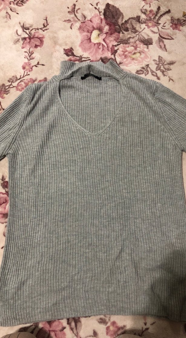 V yakalı, uzun kollu ve fitted kesim gri triko kazak. Yumuşak örme kumaştan, rahat ve sade tasarımlı.