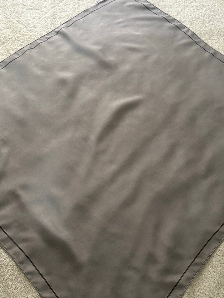 Düz, gri renkte Vakko eşarp. Sorunsuzdur.