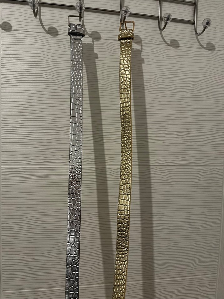 Gri ve Altın Renkli Deri Kadın Kemerleri