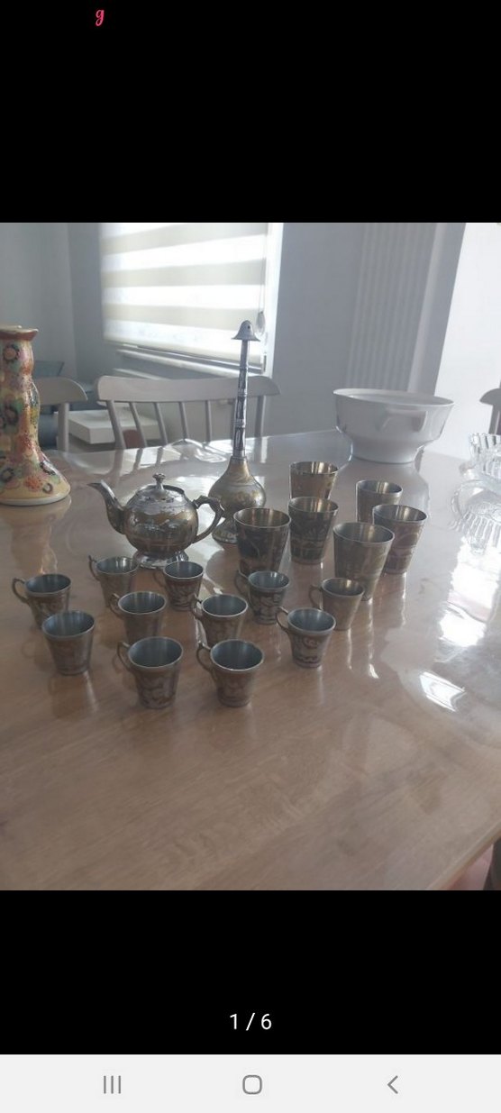 Gri ve Altın Renkli Metal Çay Seti