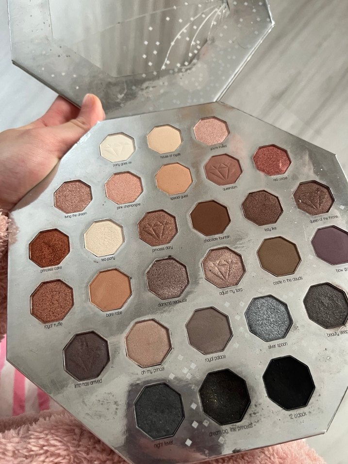 Gri ve bej tonlarında, mat ve ışıltılı dokular sunan çeşitli far renkleri içeren palet. Yurtdışın dan aldırmıştım gerçekten çok kaliteli tonları var fakat kullanmadım makyaj yapan biri değilim