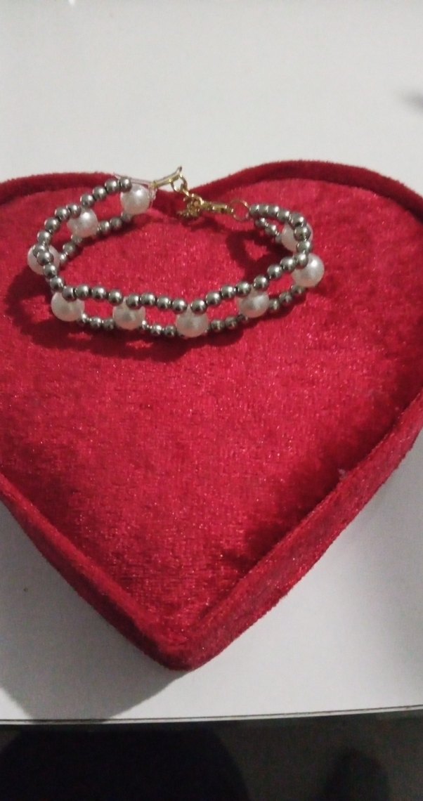 Gri ve beyaz boncuklardan oluşan minimalist tasarımlı kadın bilekliği. Günlük kullanım için sade ve desen içermeyen bir modeldir.