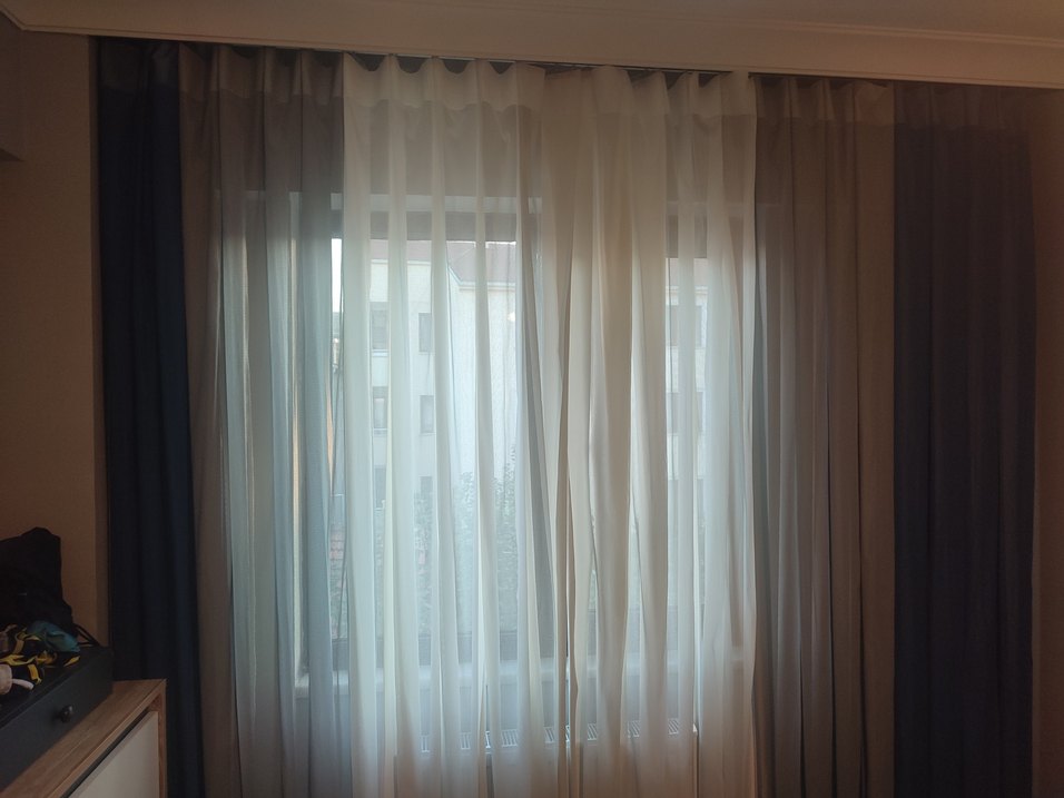 Gri ve beyaz renklerde, desensiz modern tül perdeler, yumuşak ve şık bir görünüm sağlar. Doğal ışığın içeri girmesine izin verirken mahremiyeti korur. en 252 boy 247 cm direk kornişe bağlanabilir hem güneşlik hem karartmalı