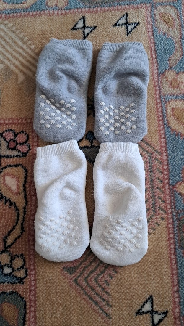 Gri ve Beyaz Kaymaz Çoraplar