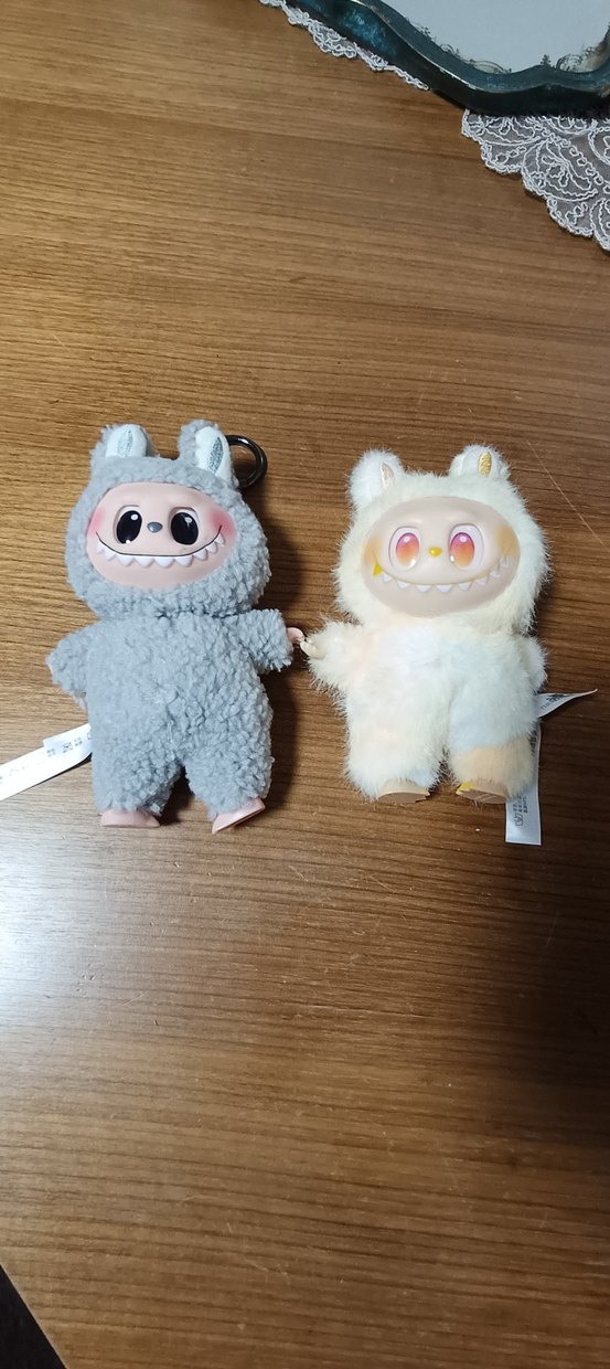 Gri ve beyaz renklerde, yumuşak tüylü dokusu ve sevimli yüz ifadeleri olan iki peluş oyuncak anahtarlık seti. Küçük kulakları ve anahtarlık halkaları bulunur.