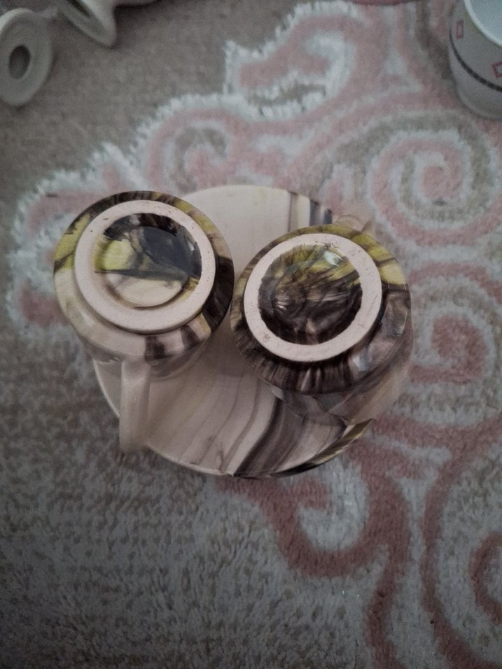Gri ve haki mermer desenli 2 seramik fincan takımı, şık ve benzersiz bir görünüm sunar. Rahat saplarıyla kullanımı kolaydır. ☕