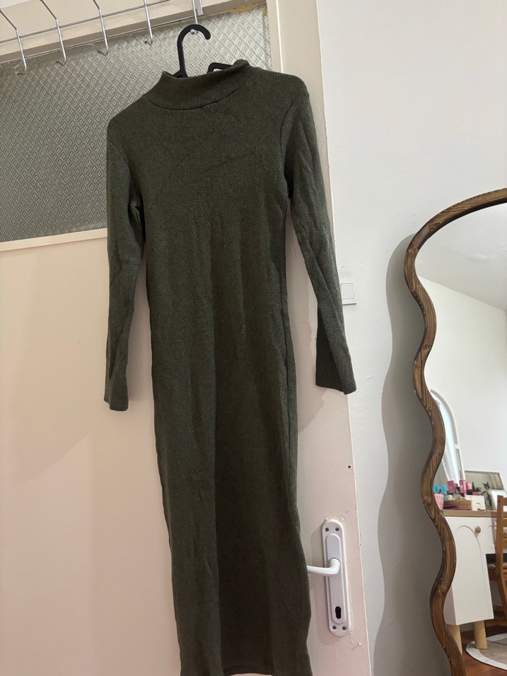 Gri ve Haki Uzun Kollu Fit Triko Elbise