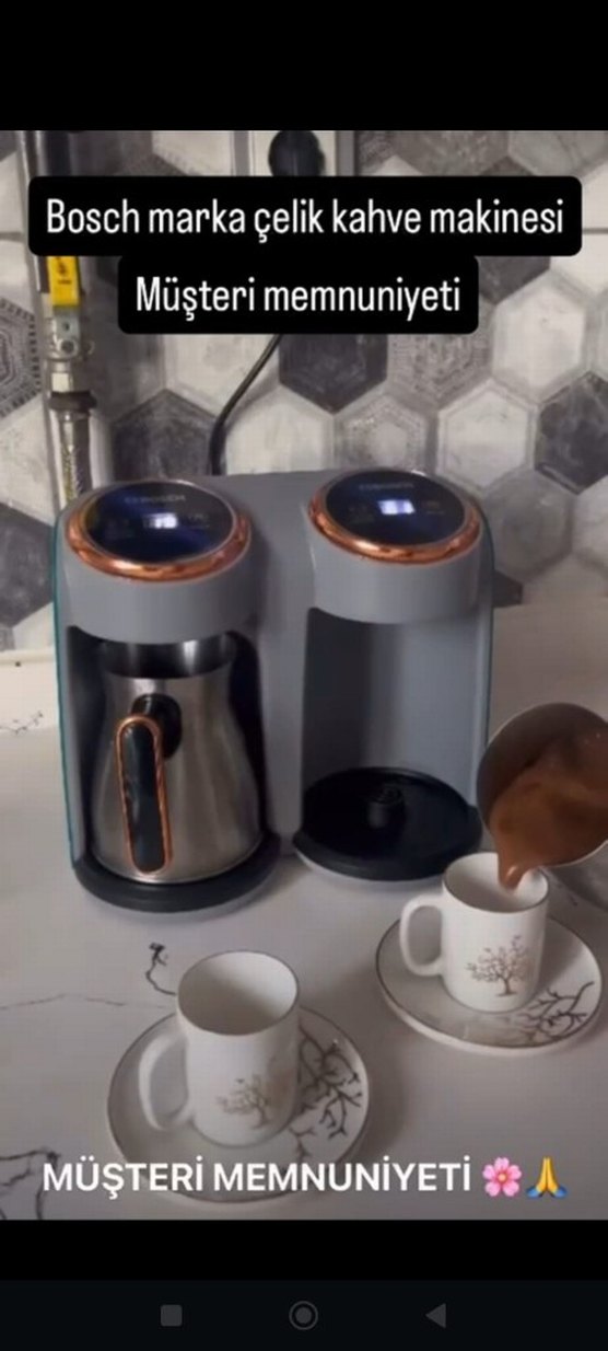 Gri ve kahverengi renklerde, çift hazneli ve paslanmaz çelik sürahili kahve makinesi. "Müşteri memnuniyeti" garantili. ☕