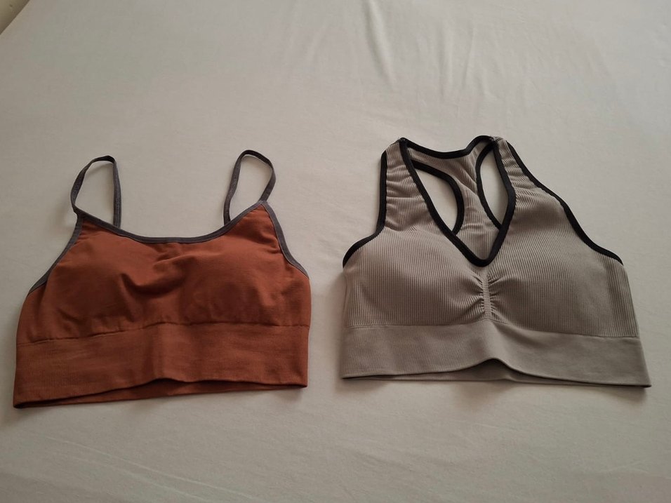 Gri ve kahverengi renklerde, rahat kesime sahip spor sütyenler, günlük kullanıma uygundur. Defosu yoktur ikisinin fiyatıdır.