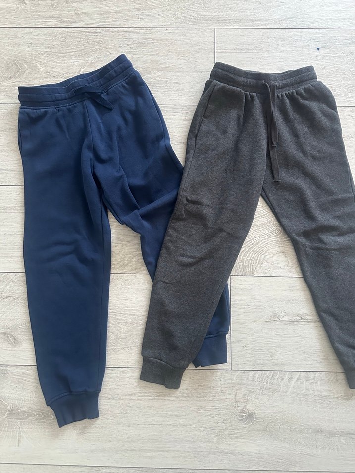 Gri ve lacivert renklerde, yumuşak ve sıcak tutan kumaştan üretilmiş, bol kesim erkek çocuk eşofman altları. Rahatlık ve sade tasarım ön planda.