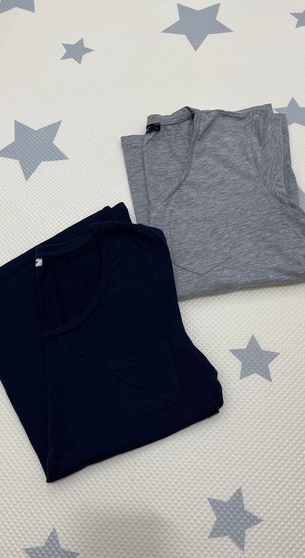 Gri ve lacivert renklerde, kısa kollu,yuvarlak yakalı ve v yakalı Rahat kesimi ve desensiz tasarımıyla konfor sağlayan ikili tişört