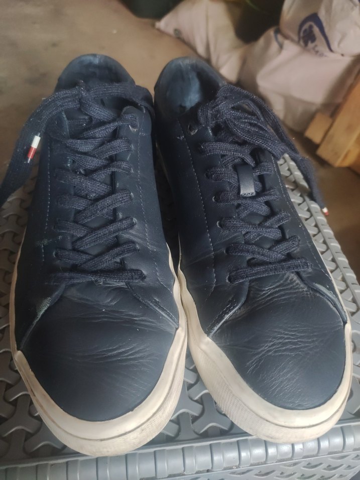 Erkek spor ayakkabıları için gri ve mavi bağcıklar, athleisure ve streetwear tarzını yansıtıyor. 40 numara