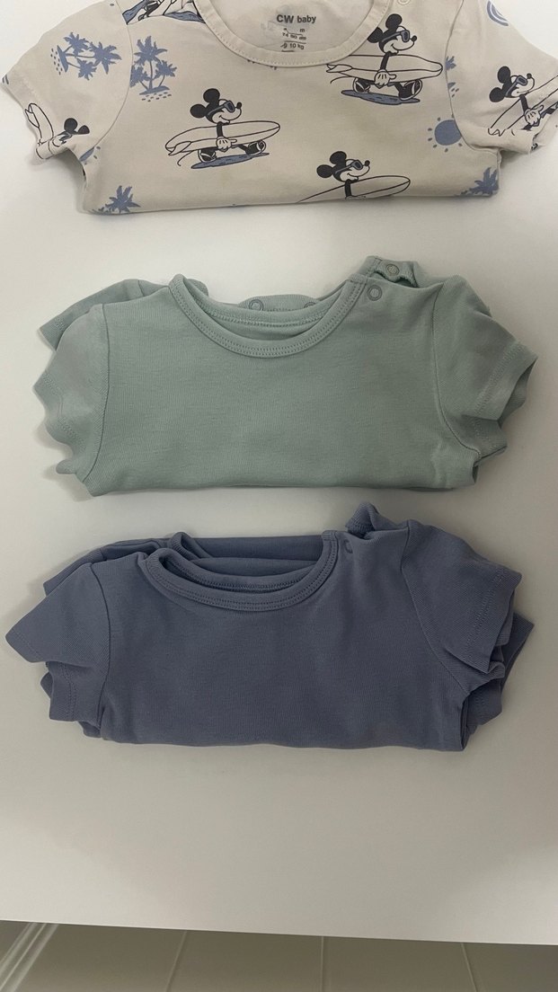 Gri ve mavi renkte, kısa kollu, pamuklu bebek bodyleri. Yuvarlak yaka ve omuzda kolay giydirme için çıtçıtlı tasarım. Rahat ve şık tarz. 5 adet