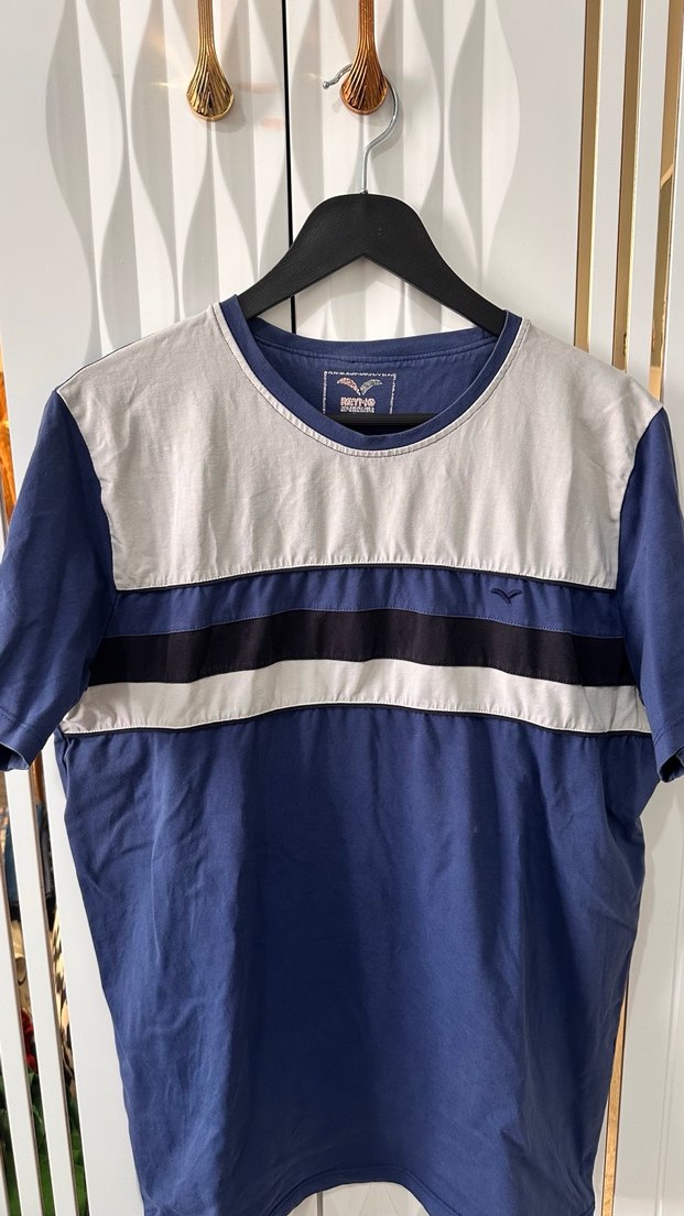 Gri ve Mavi Renkli Erkek Pamuklu Tişört