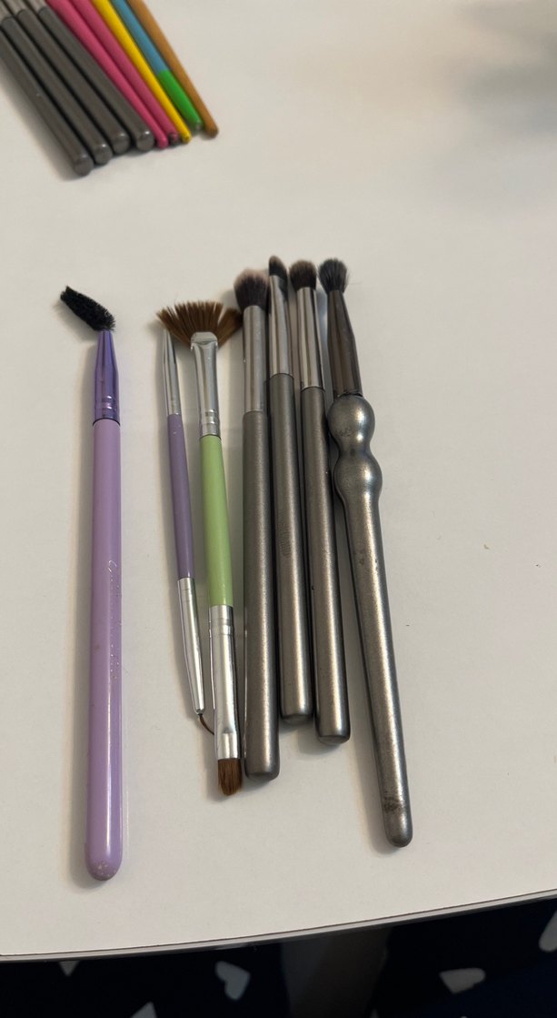 Gri ve mor saplı, farklı fırça tiplerinden oluşan 7 parçalık makyaj fırçası seti. ️