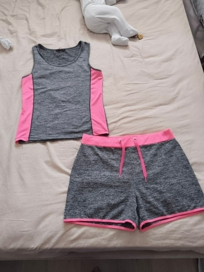 Gri ve Pembe Spor Takımı Kadın Atlet ve Şort