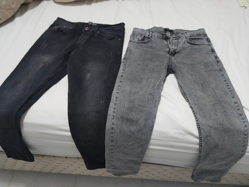 Gri ve siyah renkte, normal boy ve regular fit kesime sahip erkek kot pantolonlar. Günlük kullanım ve sokak stiline uygun, desensiz ve rahat şıklık sunar.