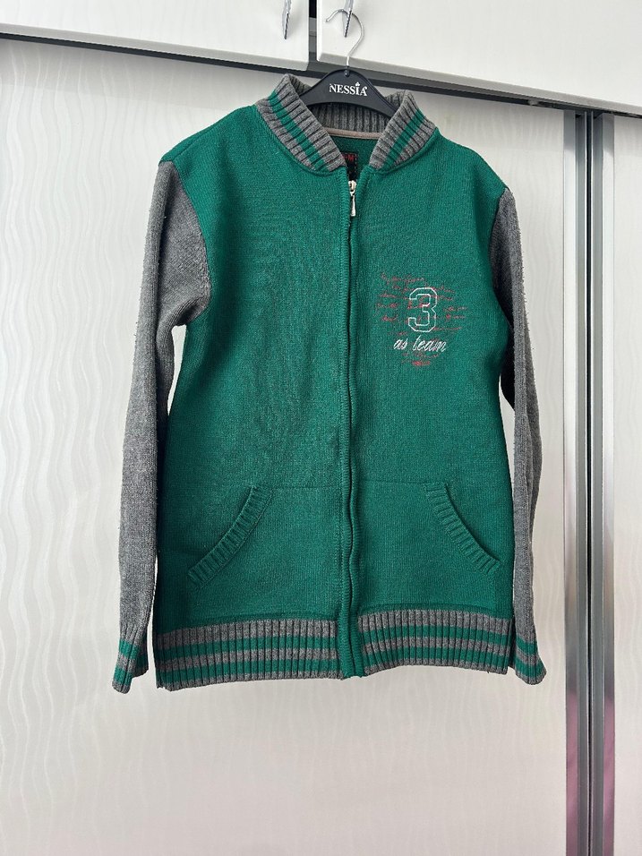 Gri ve Yeşil Erkek Triko Ceket