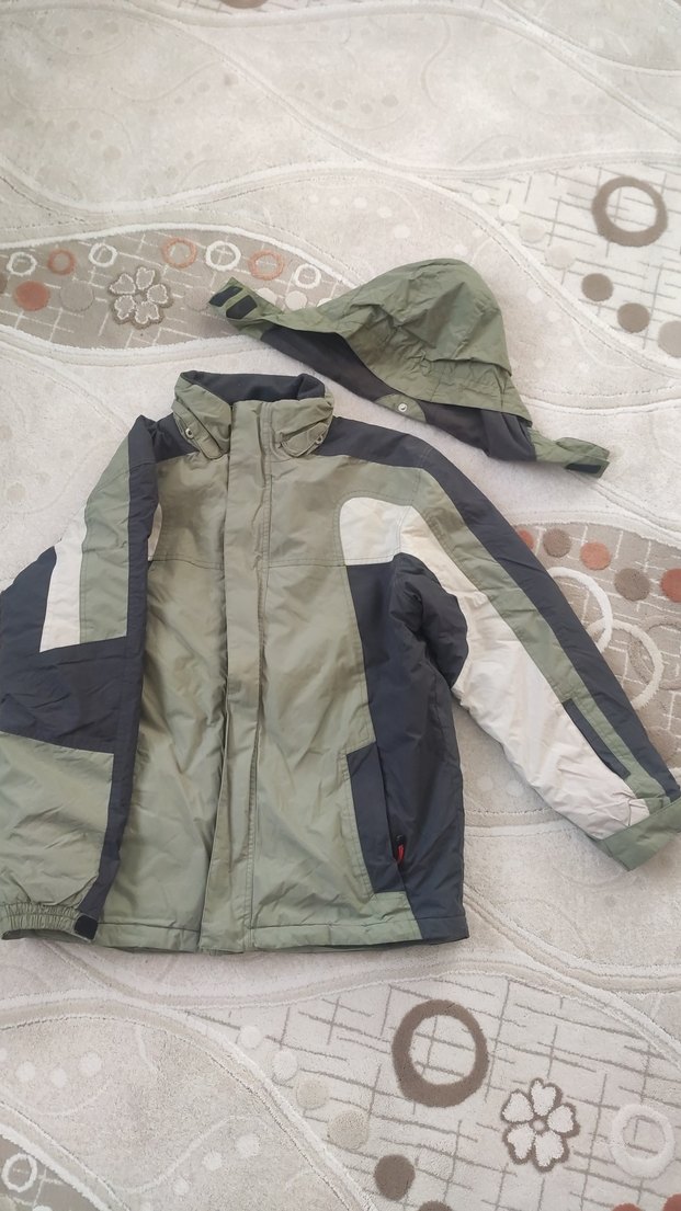 Gri ve yeşil Kapüşonlu Erkek Çocuk Mont