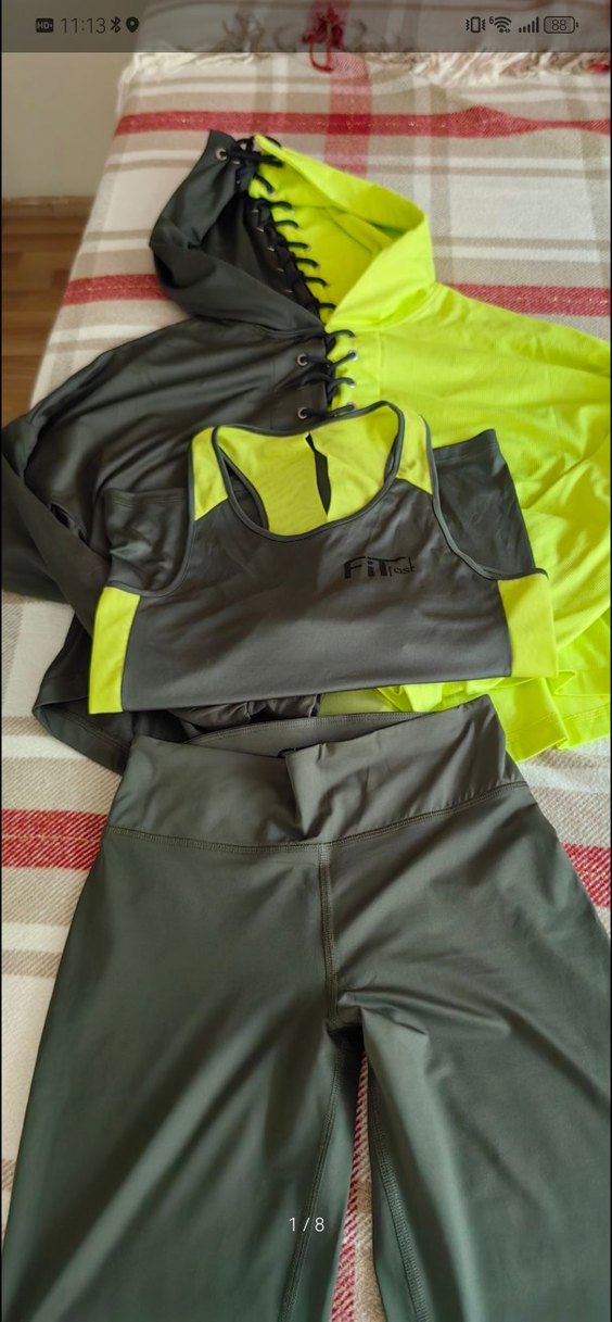 Gri ve yeşil renkli fit kesim spor takımı