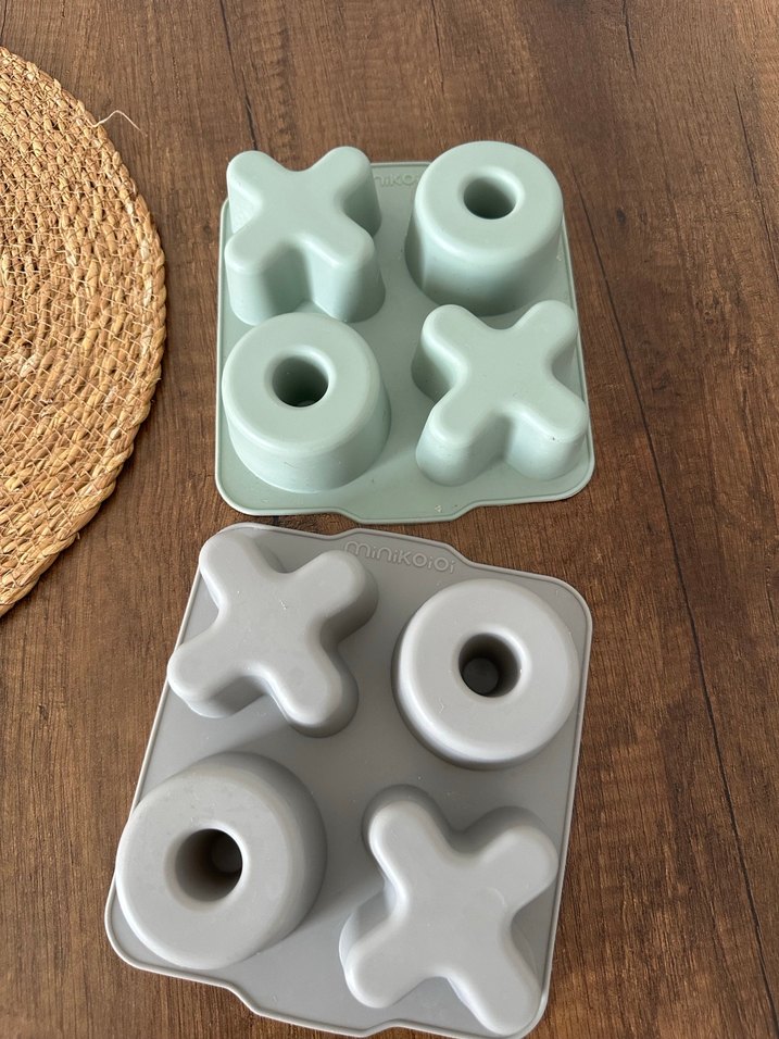 Gri ve yeşil renklerde, X ve O şekilli iki farklı kek kalıbı seti.