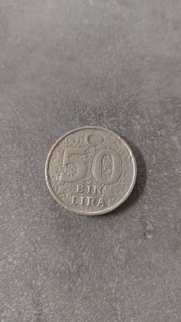 Gri renkte, 50 Bin Lira motifli vintage tarzda erkek rozeti. Sade ve karşı kültür stilini sevenler için uygun.