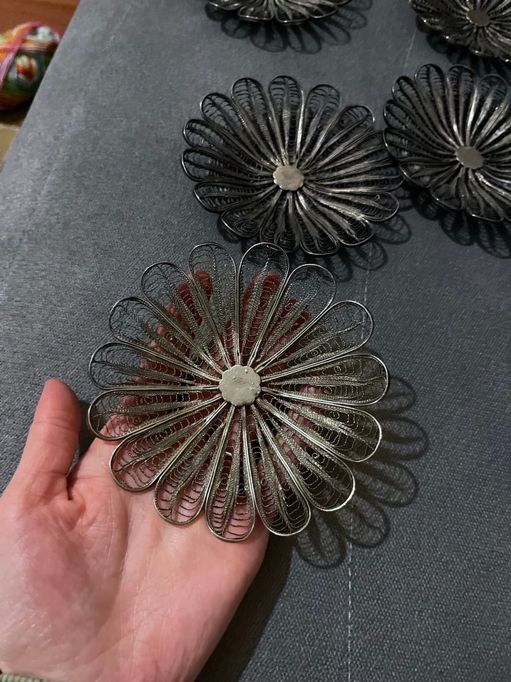 20 yy mardin yöresinde yapılmış , bakır üzeri gümüş kaplama full telkari işçilikli 9 adet çay tabağı