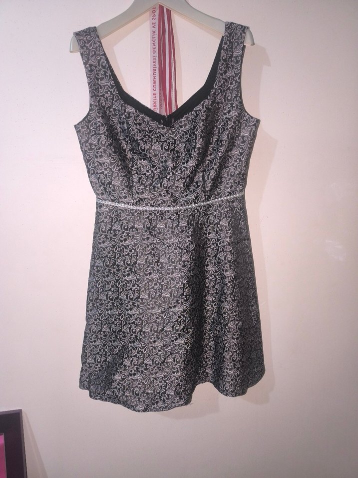 Dantel detaylı, kolsuz ve fitted kesimli gri elbise, vintage gotik tarzıyla parti için uygun midi boyda.