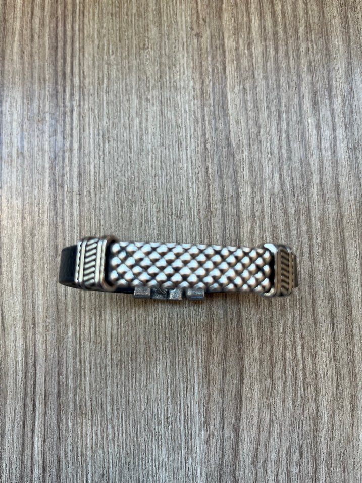 Vintage tarzı gri renkte, dokulu detaylara sahip erkek bileklik. Retro ve bohem tarzları sevenler için uygun.