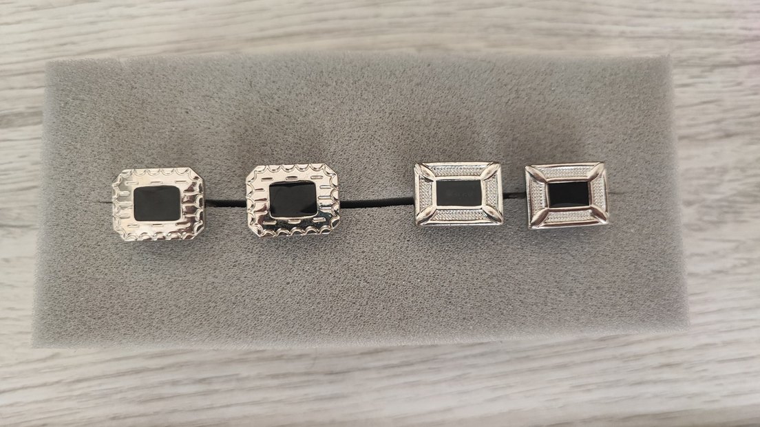 2 çift Gri vintage tarzda erkek kol düğmeleri, çağdaş dikdörtgen tasarım ve siyah detaylı, klasik görünüm için uygun. ️dolabımdan farklı ürünlerle birlikte almak isterseniz yardımcı olurum