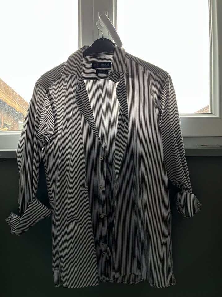 Gri renkte, notched lapel yakalı ve düğmeli erkek midi uzun kollu gömlek. Regular fit kesim ve sentetik kumaştan üretilmiştir