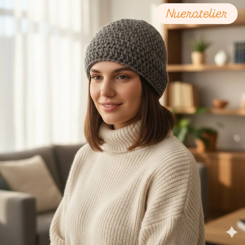 Nueratelier markalı örgü kadın bere, yumuşak ve sıcak tutan yünden yapılmıştır, trend ve rahat bir tarz sunar. ürün el örgüsüdür.