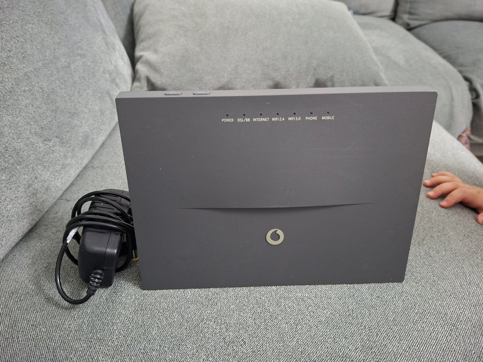 Gri renkte, telefon ve mobil bağlantı seçeneklerine sahip çoklu gösterge ışıkları bulunan wifi cihazı.