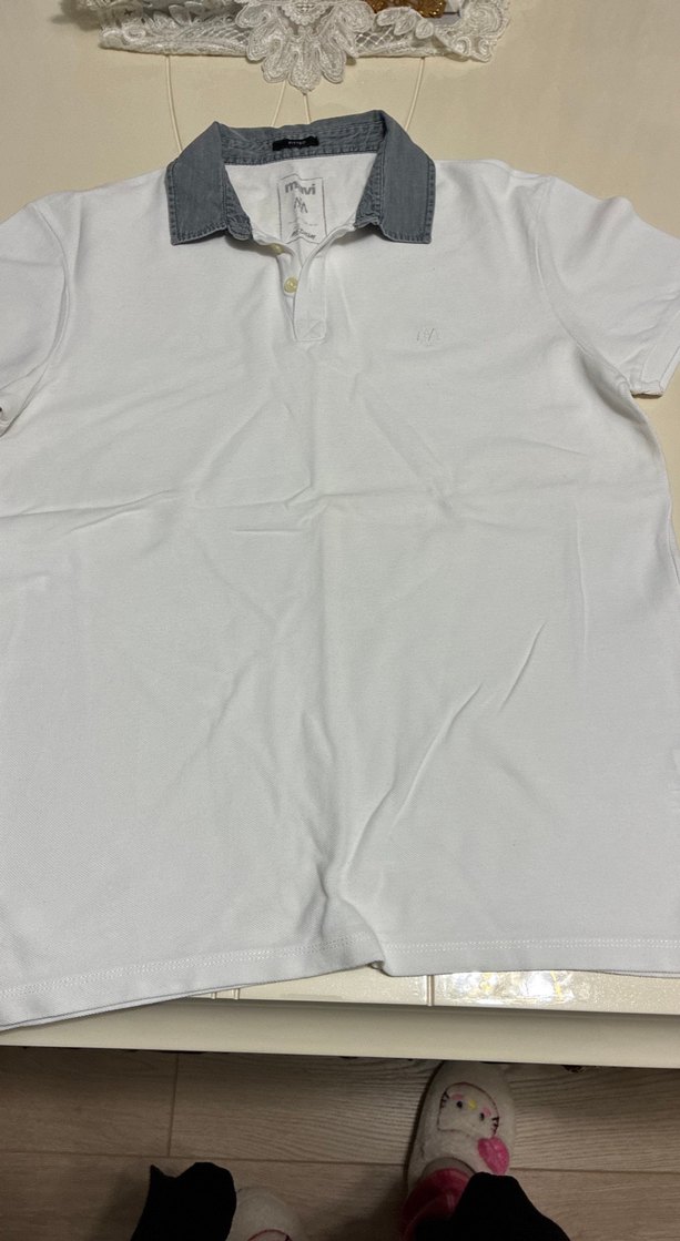 Gri yakalı detaylara sahip beyaz erkek polo tişört, kısa kollu ve normal boyda, sokak stiline uygun düz kesim ve sentetik kumaştan üretilmiştir. ⚪beden 50. boy 69