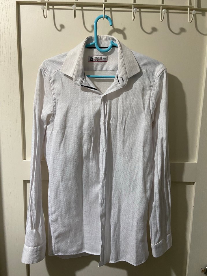Bu erkek gömleği, gri yakalı ve düğmeli ön kısmıyla keten kumaştan üretilmiştir. Uzun kollu, normal kesim ve sade beyaz renktedir. Ofis ve günlük kullanım için uygundur.