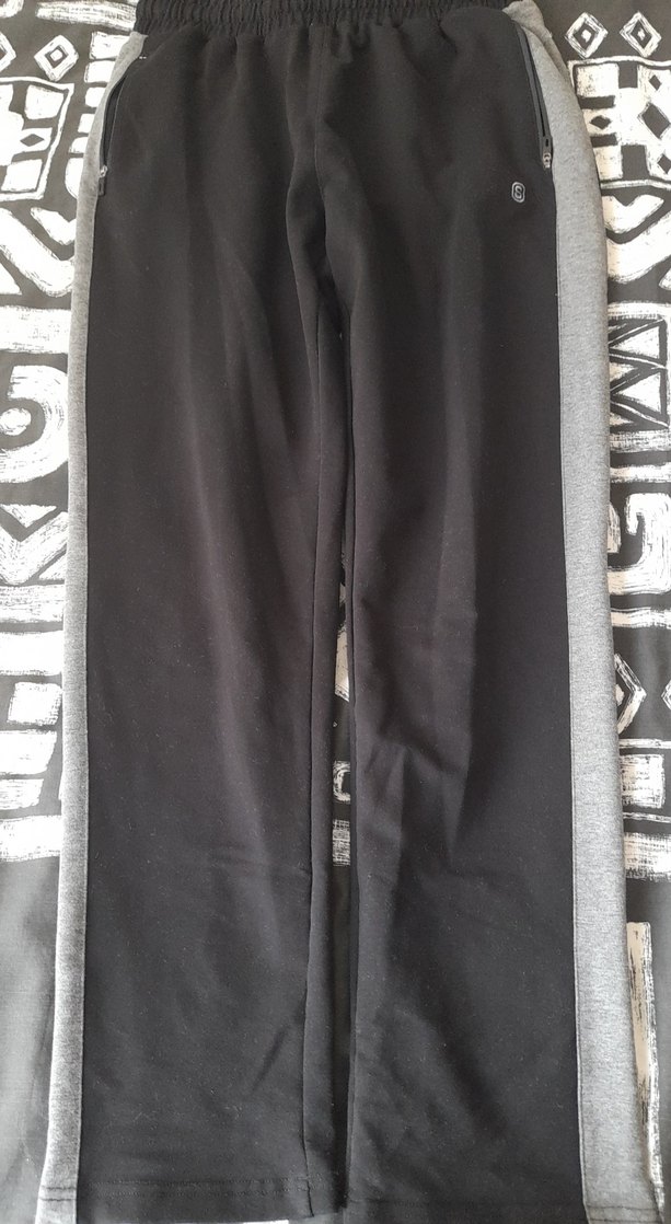 Gri yan şeritli, bol kesim erkek eşofman altı. Yumuşak ve sıcak dokuda, fermuarlı cepleriyle günlük sokak stiline uygundur. ♂️