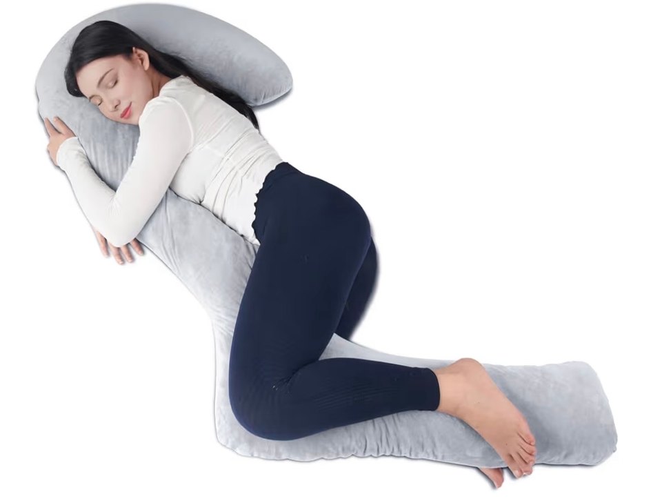 Yumuşak ve pürüzsüz kumaştan yapılmış gri hamile ve emzirme yastığı, hamilelik ve emzirme dönemlerinde konforlu destek sağlar.