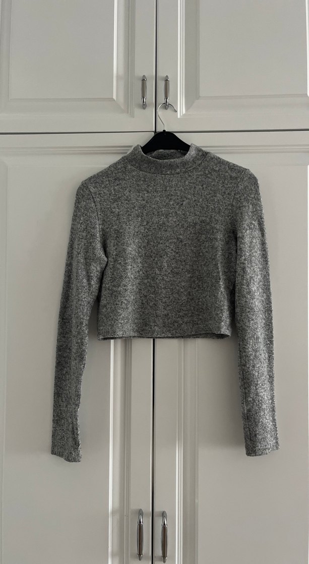 Gri renkte, uzun kollu ve yarım balıkçı yaka, normal midi boyda, dar kesim kadın kazak. Rahat ve sokak tarzına uygun.