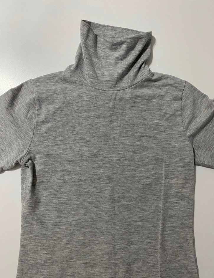 Yumuşak keten kumaştan, gri renkli, yarım balıkçı yaka ve uzun kollu, düz ve vücuda oturan kadın triko. Sokak stili ve dış mekan kullanımı için uygundur.