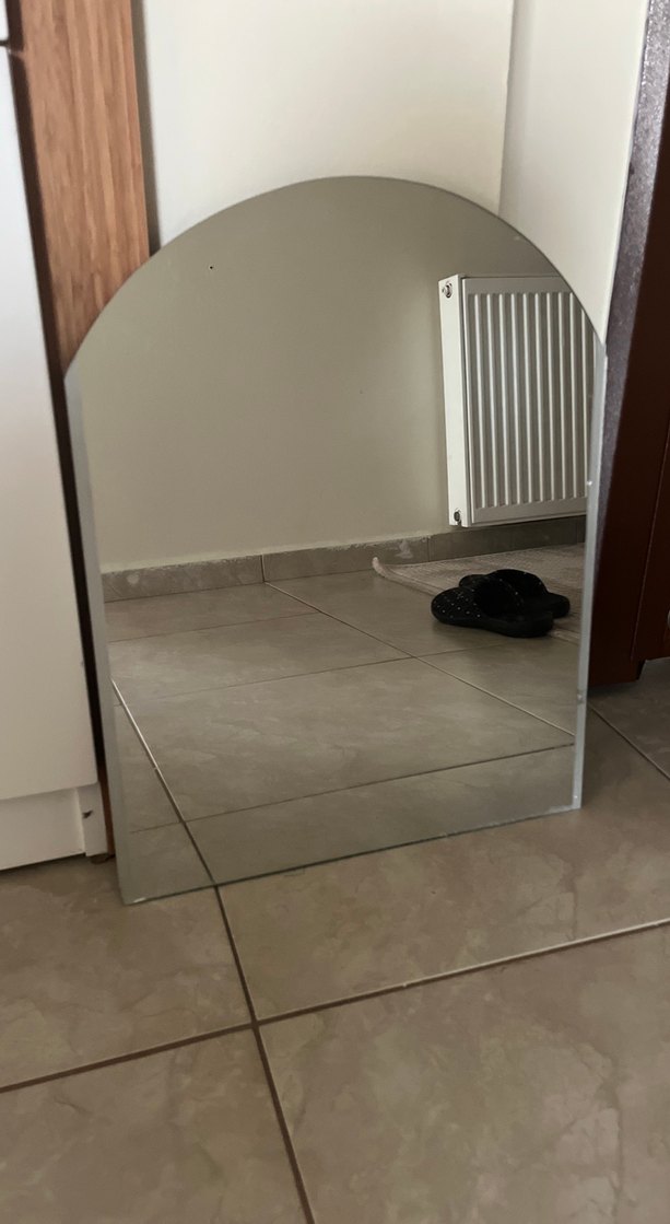 Yuvarlak üst kenarlı gri ayna, modern ve sade tasarımıyla her mekâna uyum sağlar. Ölçüleri 41x53