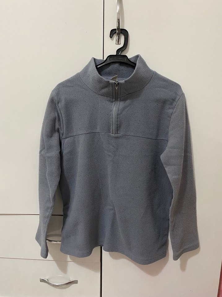 Yarım fermuarlı, yüksek yakalı gri erkek polar, rahat kesimi ve yumuşak dokusuyla günlük kullanıma uygundur.