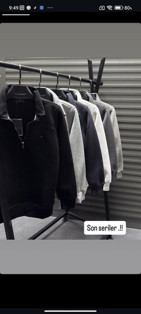 Yarım fermuarlı, yüksek yakalı, uzun kollu gri erkek sweatshirt. Rahat kesimi ve düz deseniyle günlük kullanıma uygundur. 'Son seriler.!!' yazısı yer alır.