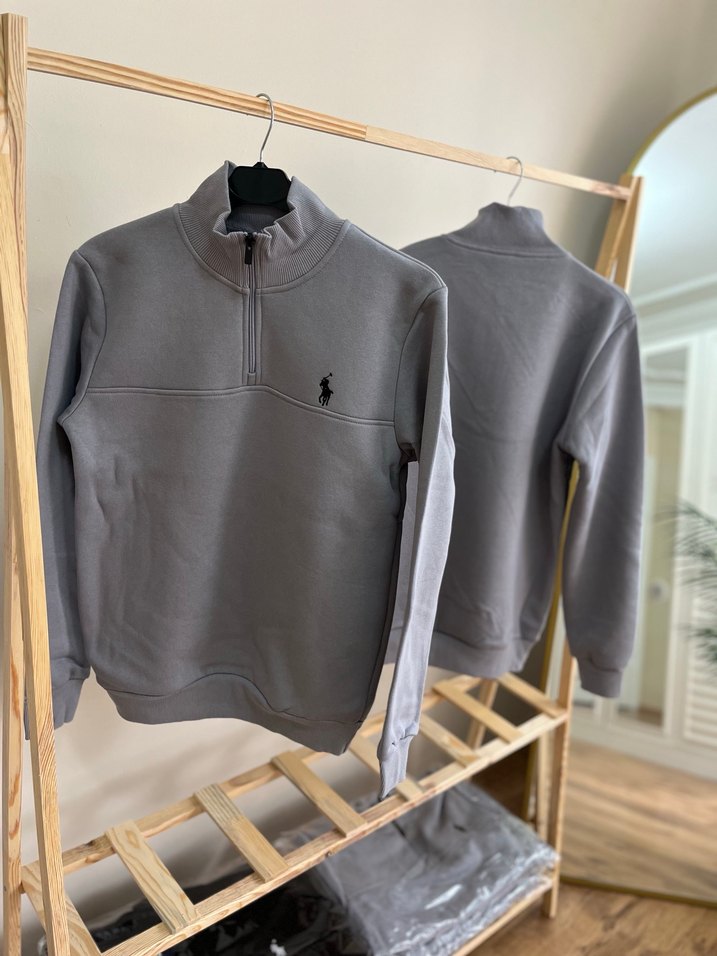 Gri Yarım Fermuarlı Erkek Sweatshirt