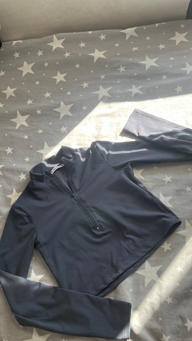 Gri Yarım Fermuarlı Kadın bluz